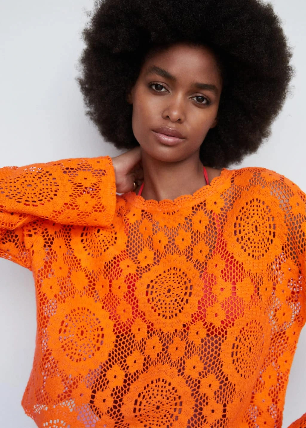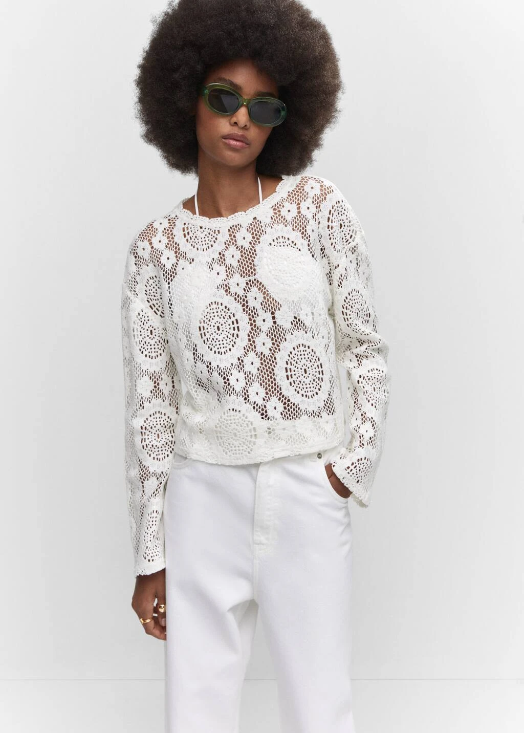 tissu de coton melange, tissu brode, tissu ajoure, coupe droite, col rond, manches longues, sans fermeture, saison des festivalsComposition: 89% coton,11% polyester. Col: 100% coton