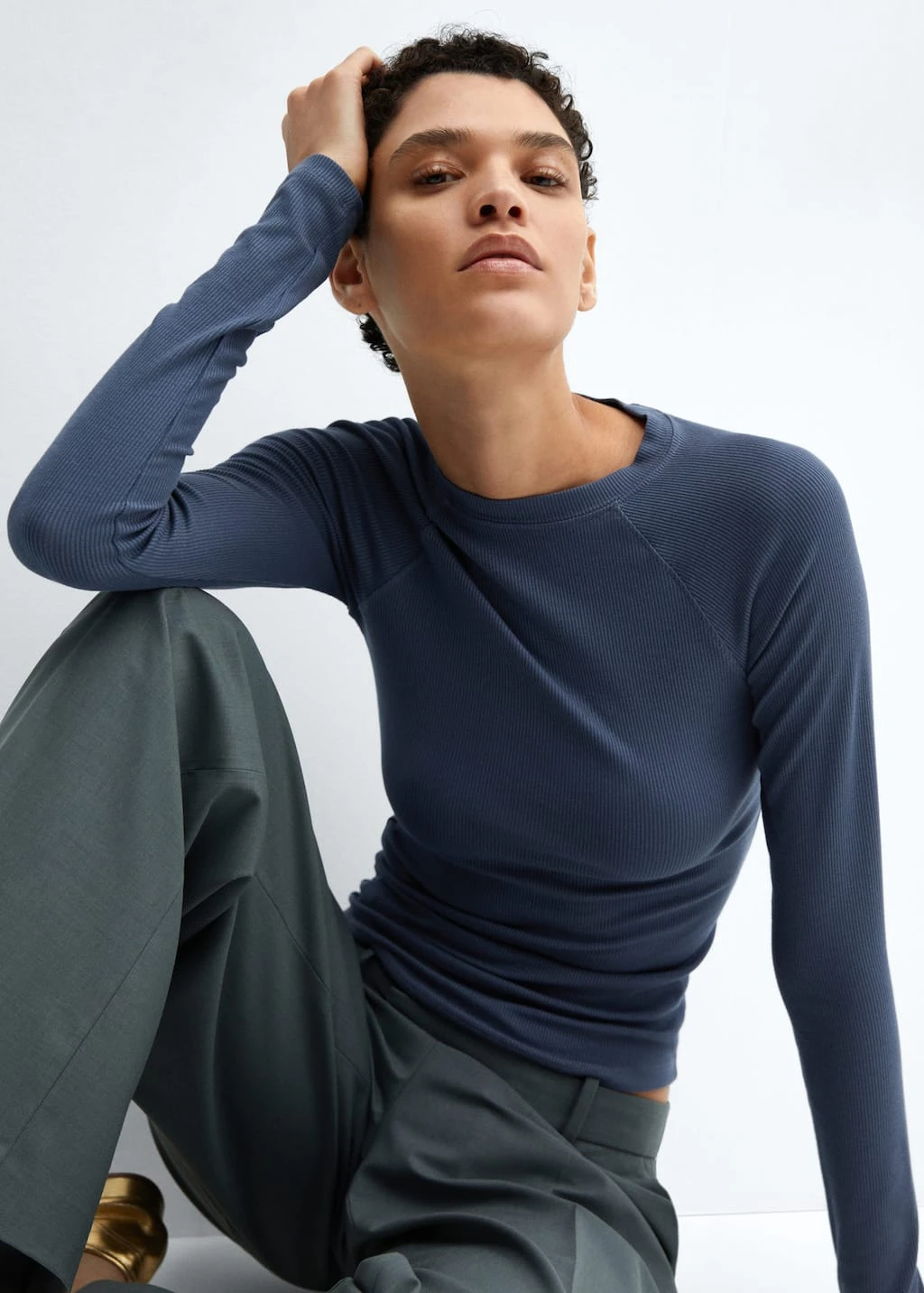 T-shirt Côtelé Manches Longues