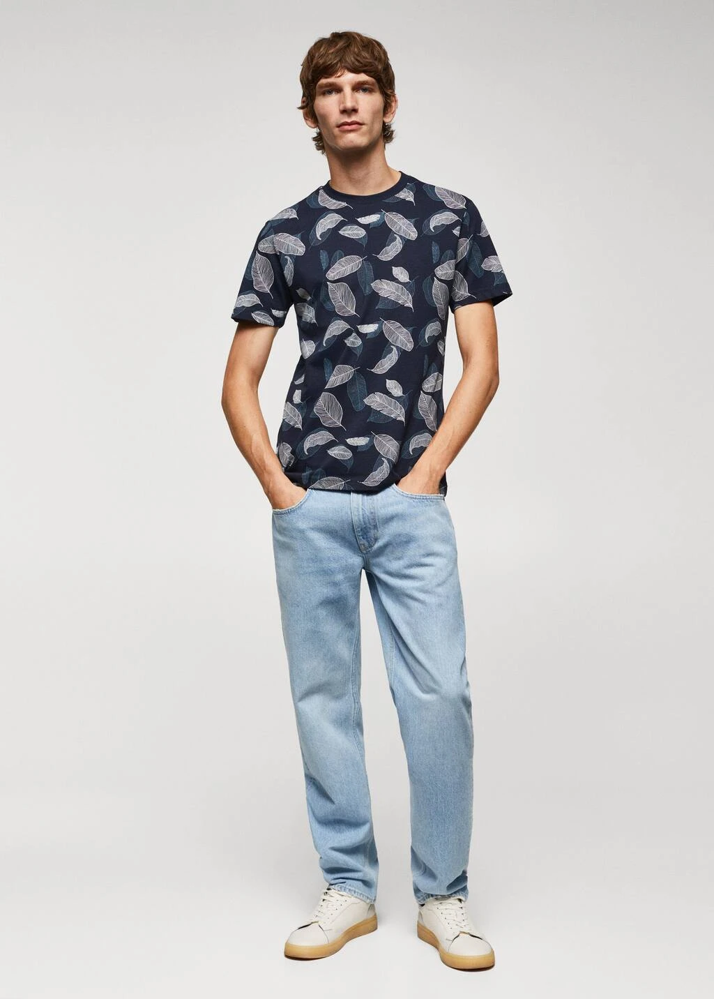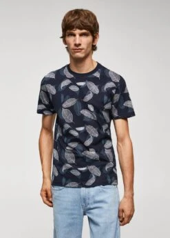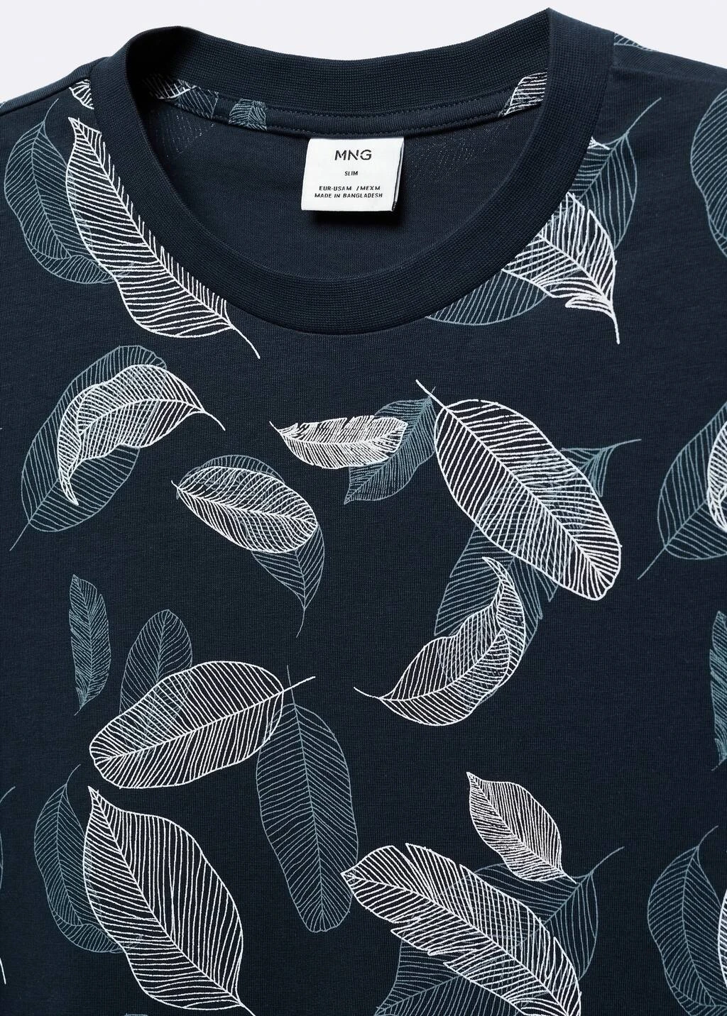 100 % coton, slim-fit, imprime feuilles, manches courtes, bas droit, le mannequin mesure 190 cm et porte une taille mComposition: 100% coton