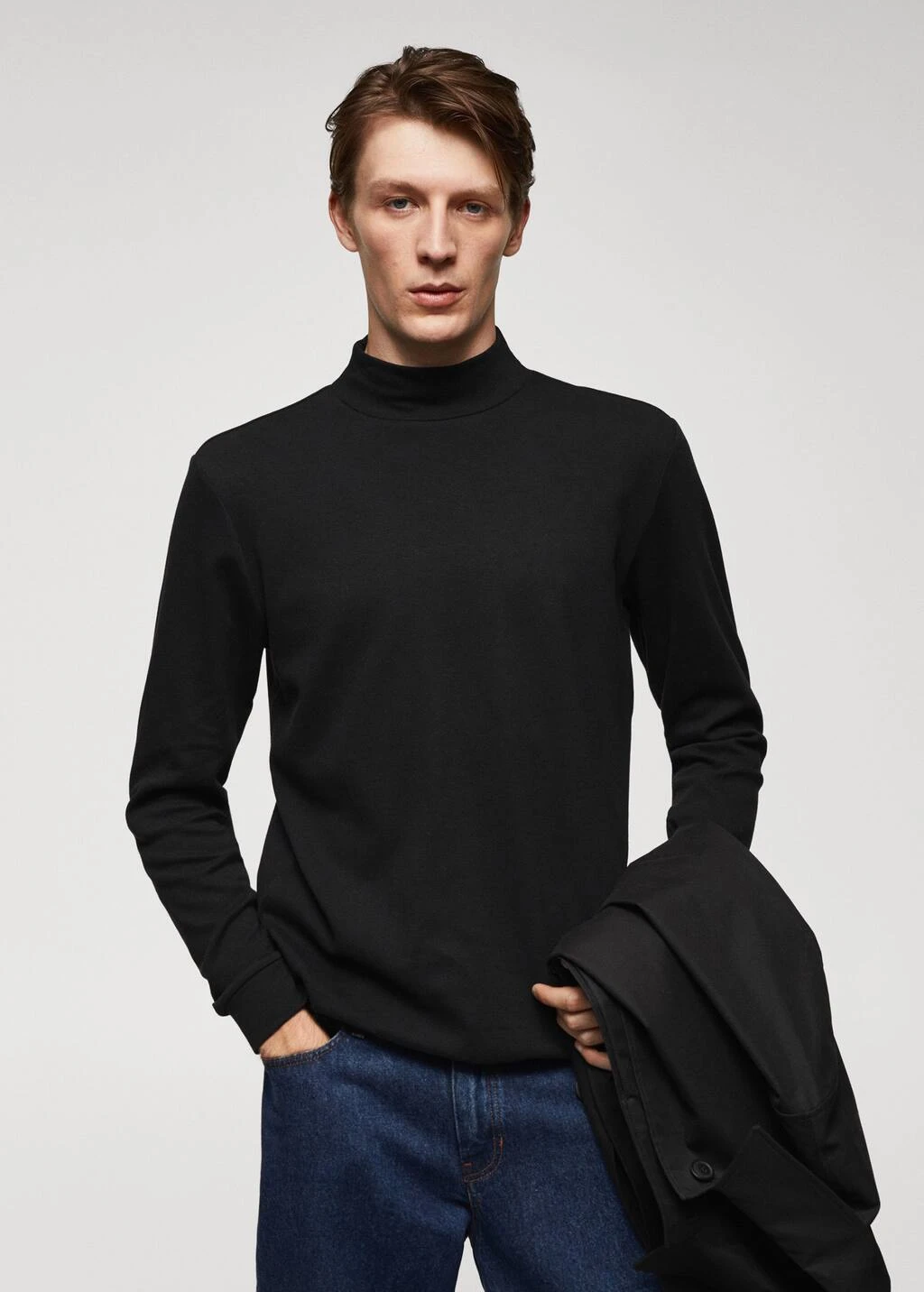 regular-fit, tissu de coton legerement extensible, col montant, manches longues avec poignets elastiques, bas droit, le mannequin mesure 190 cm et porte une taille mComposition: 96% coton,4% elasthanne