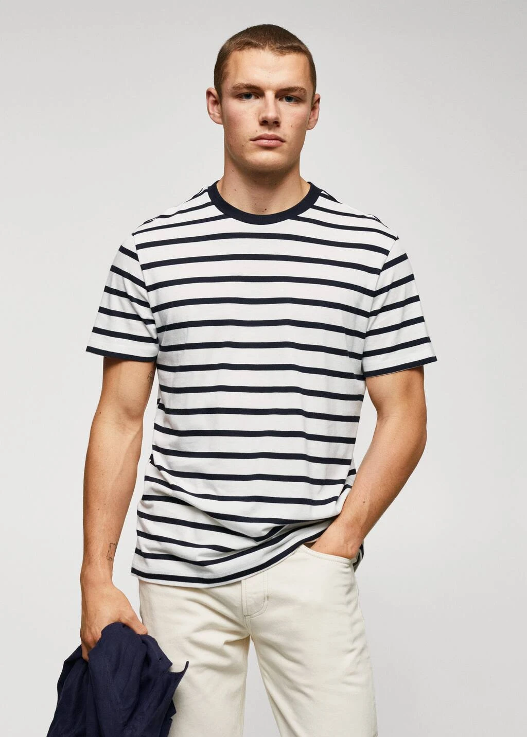 regular-fit, tissu en coton et modal melanges, tissu leger, imprime a rayures horizontales, manches courtes, bas droit, le mannequin mesure 187 cm et porte une taille mComposition: 50% coton,50% modal