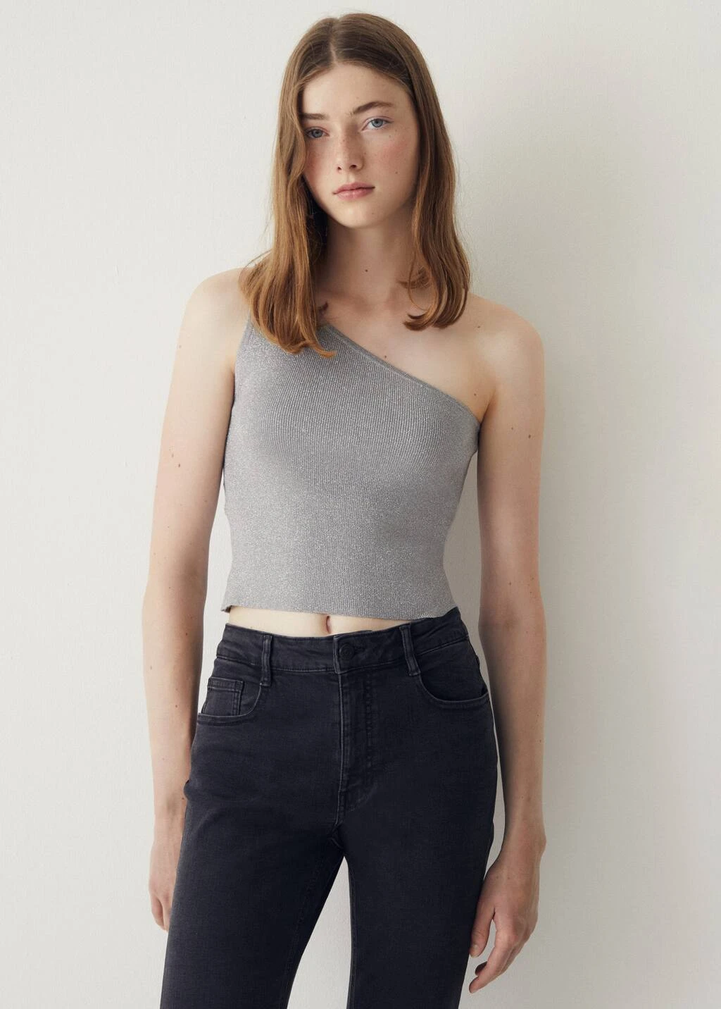 tissu en maille fine, asymetrique, detail brillant, col asymetrique, sans manchesComposition: 75% viscose,20% polyamide,5% metal
