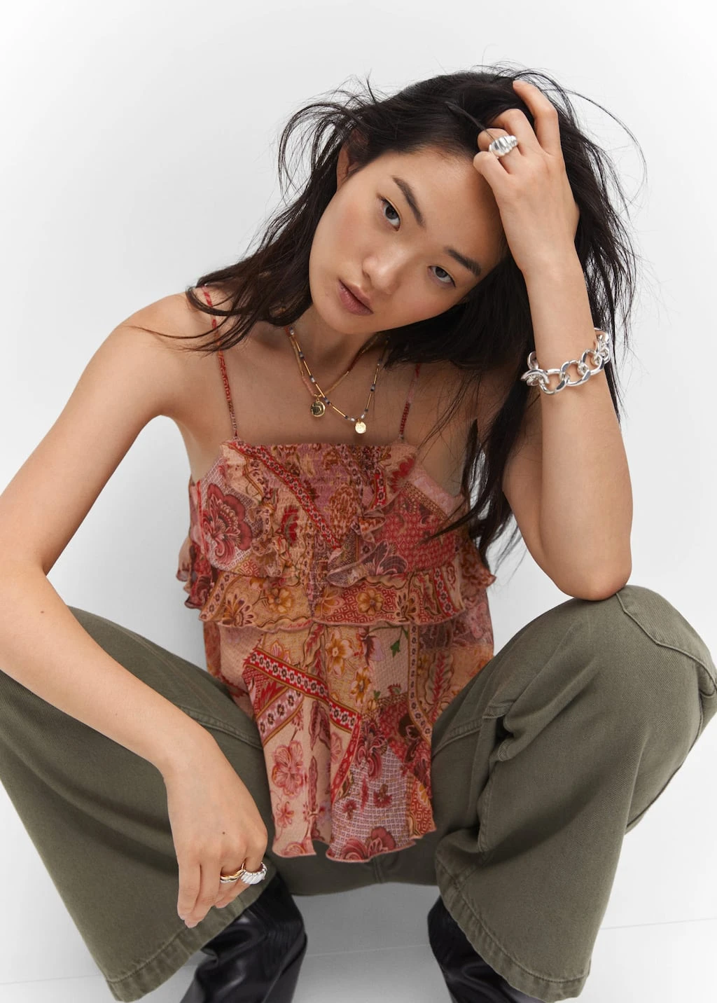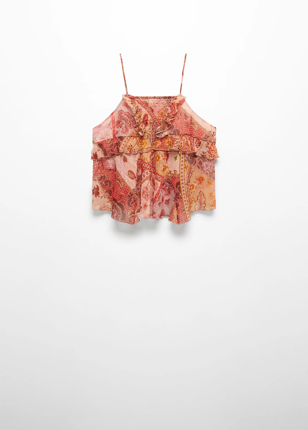 tissu en gaze, tissu fluide, coupe droite, imprime, col droit, bretelles fines, sans fermeture, details fronces, details volantes, style bohoComposition: 100% polyester. Doublure: 100% polyester