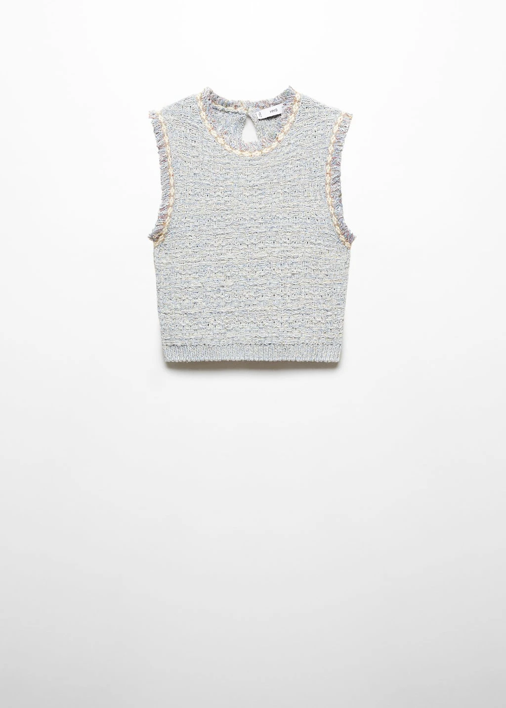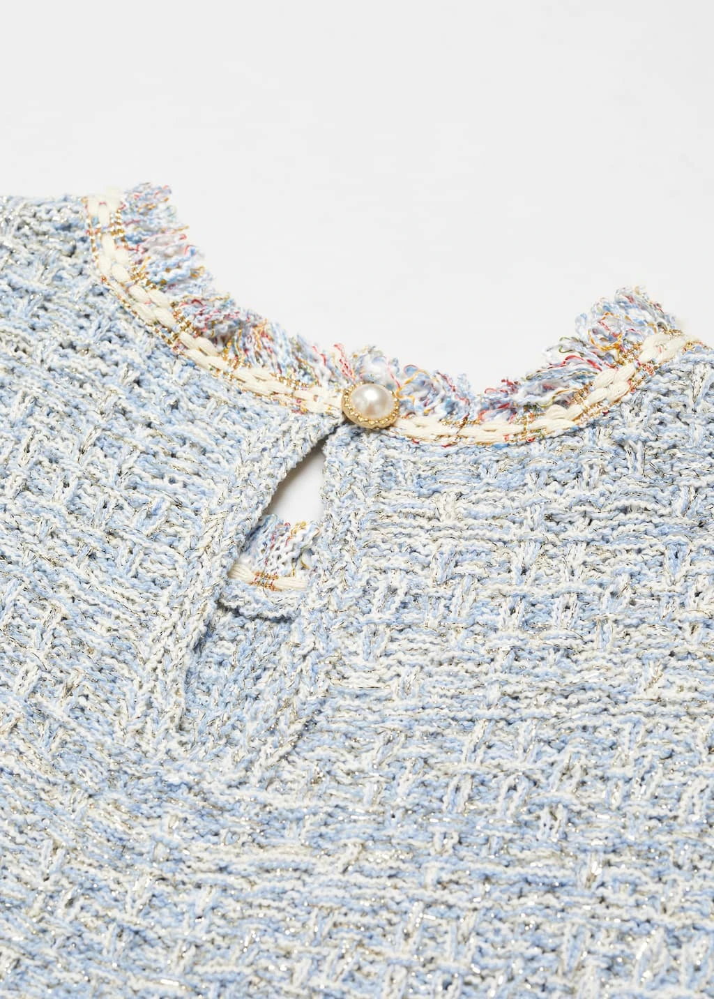 tissu de coton melange, tissu tweed, coupe courte, coupe droite, col rond, sans manches, ouverture dans le dos avec bouton, bouton imitation bijou, total lookComposition: 67% polyester,30% coton,3% polyester avec revêtement de cuivre