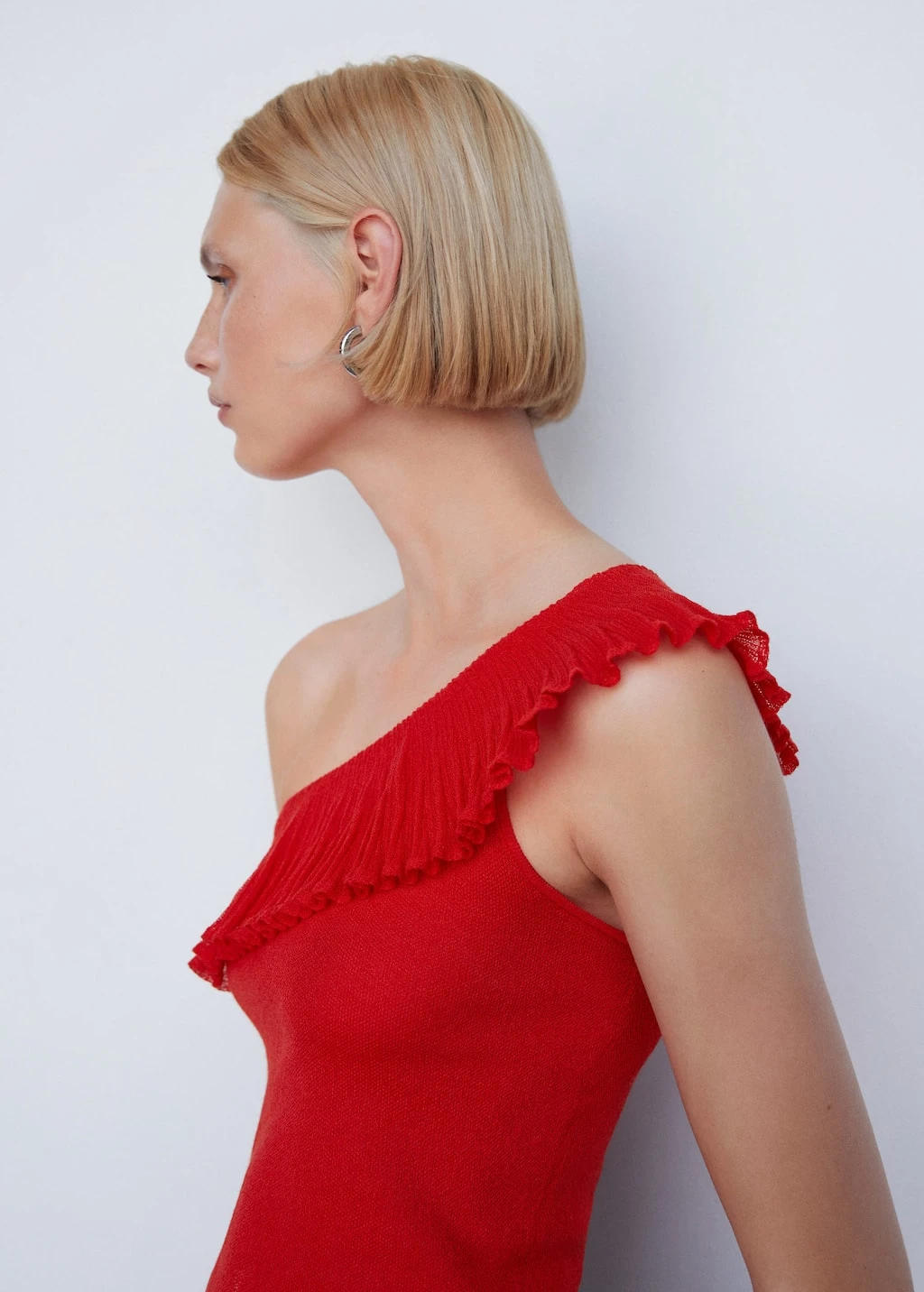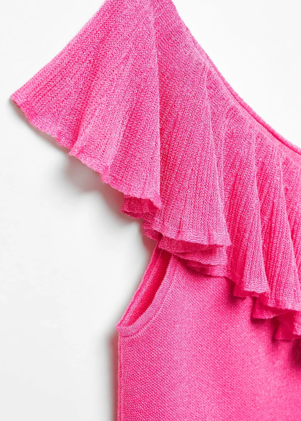 tissu en maille fine, coupe asymetrique, ajuste, style crop, col asymetrique, maxivolant, sans manches, sans fermetureComposition: 70% viscose,30% polyester