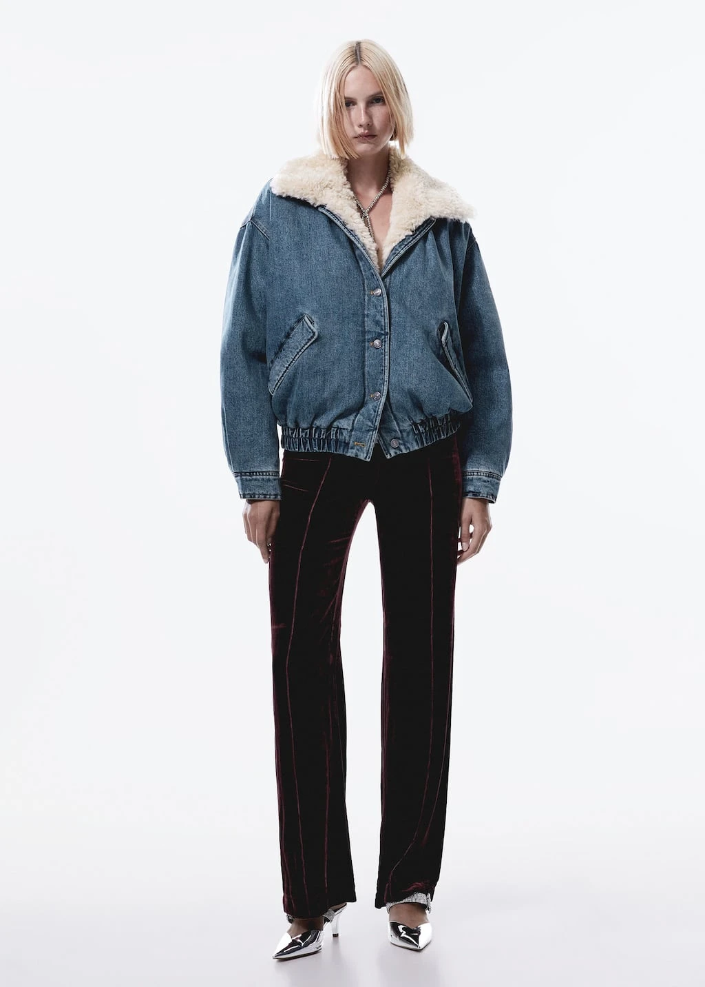 tissu en coton de style jean, style bomber, style oversize, col chemise, col moutonne, col fausse fourrure amovible, manches longues, deux poches plaquees sur le devant, fermeture boutonnee sur le devant, bas elastique, doublureComposition: 100% coton. Doublure: 65% polyester,35% coton