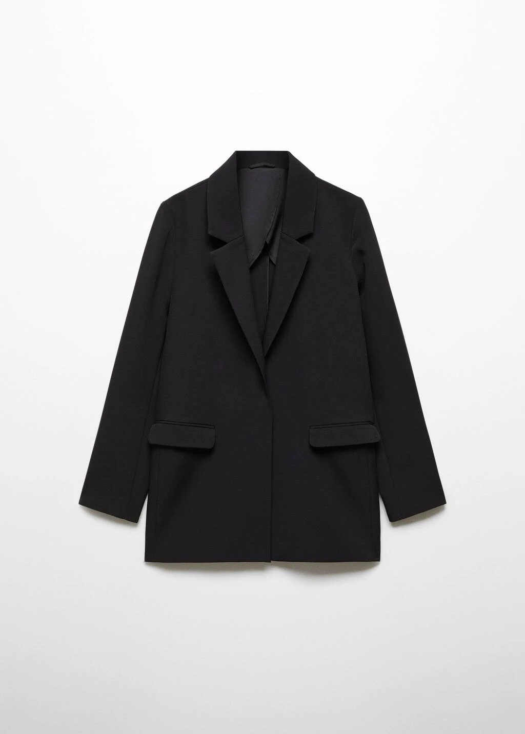 coupe droite, ajuste, col en v avec rabat, revers crantes, manches longues, epaules structurees, deux poches a rabat sur les cotes, pinces, ouverture a l’arriere, total look, style blazer, collection fetes et ceremonies, doublureComposition: 92% polyester,8% elasthanne. Doublure: 100% polyester