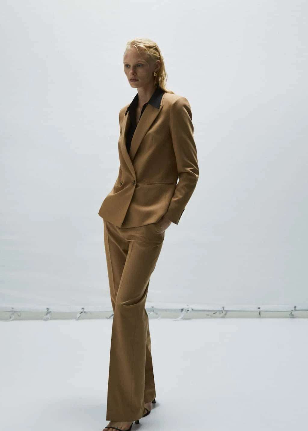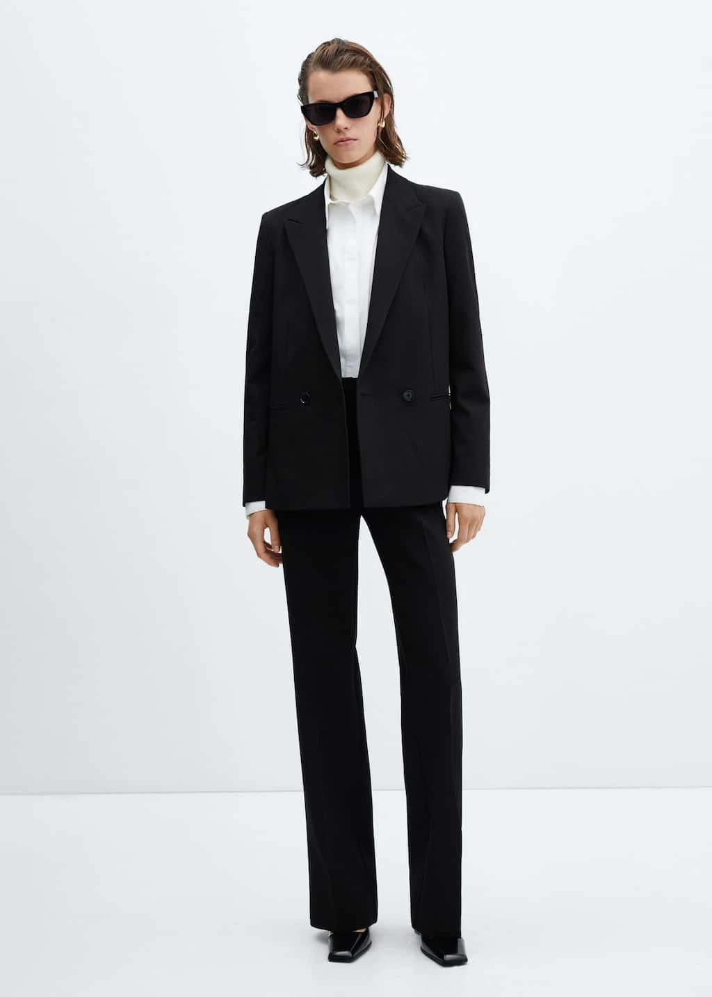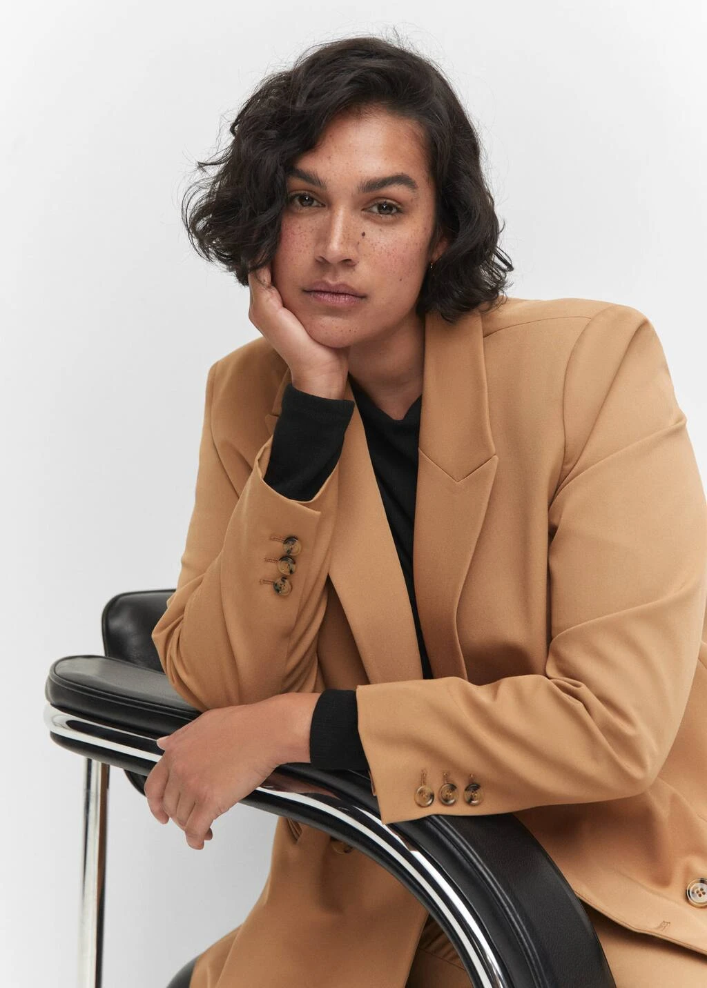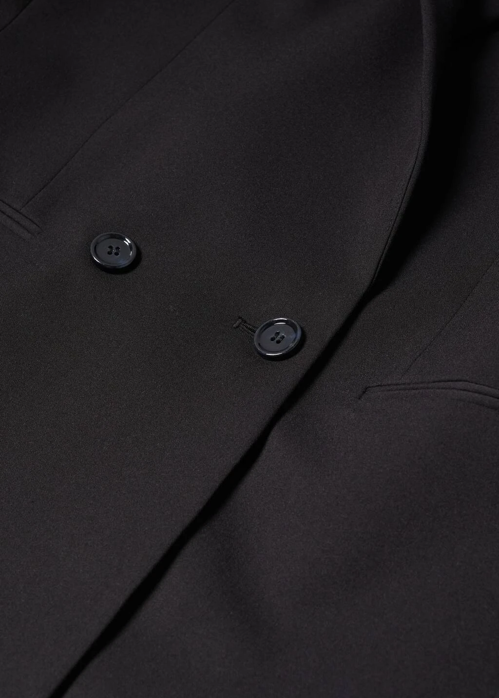 coupe droite, coupe longue, style blazer, col en v avec rabat, manches longues boutonnees, poches decoratives sur le devant, doublure, fermeture a double boutonnage, total look, disponible plus, collection fetes et ceremoniesComposition: 76% polyester,18% viscose,6% elasthanne. Doublure: 55% polyester,45% viscose. Doublure manches: 100% polyester. Lisiere: 100% polyester