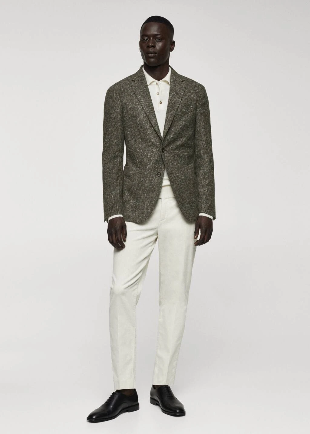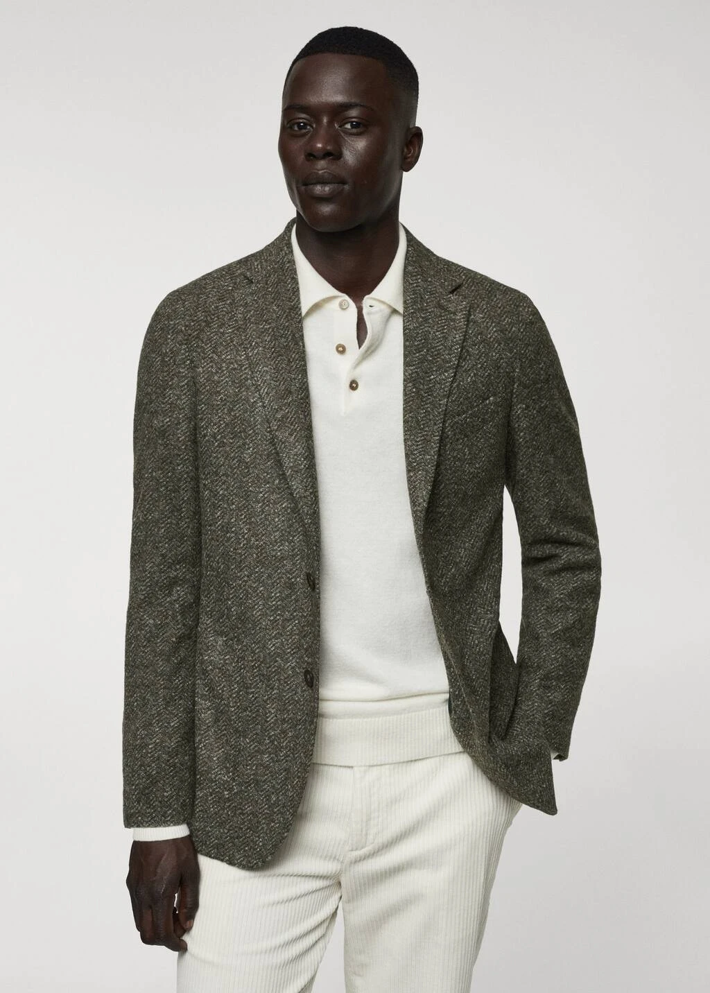 le blazer como, confectionne en flanelle de laine vierge, est un modele polyvalent et intemporel. le tissu presente un motif a chevrons, ideal pour les looks plus decontractes, slim-fit, col a revers, fermeture a boutons sur le devant, poche passepoilee sur la poitrine, deux poches plaquees sur le devant, manches longues avec poignets boutonnes, poche interieure, double ouverture au dos, doublure partielle, bas droit, le mannequin mesure 190 cm et porte une taille 50, mango designed by boglioli : en collaboration avec la maison de couture italienne historique boglioli, nous avons developpe une collection de huit blazers de premiere qualite, fabriques avec des tissus italiens. le patron de chaque vetement a ete concu avec une combinaison d’art et de precision meticuleuse, en accordant le plus grand soin aux details et aux finitions. le resultat : des vetements qui s’adaptent au corps avec elegance et confort. chacun des huit modeles qui composent la proposition a ete fabrique dans les meilleurs ateliers du portugalComposition: 54% acrylique,24% laine vierge,22% polyester. Doublure: 52% viscose,48% polyester