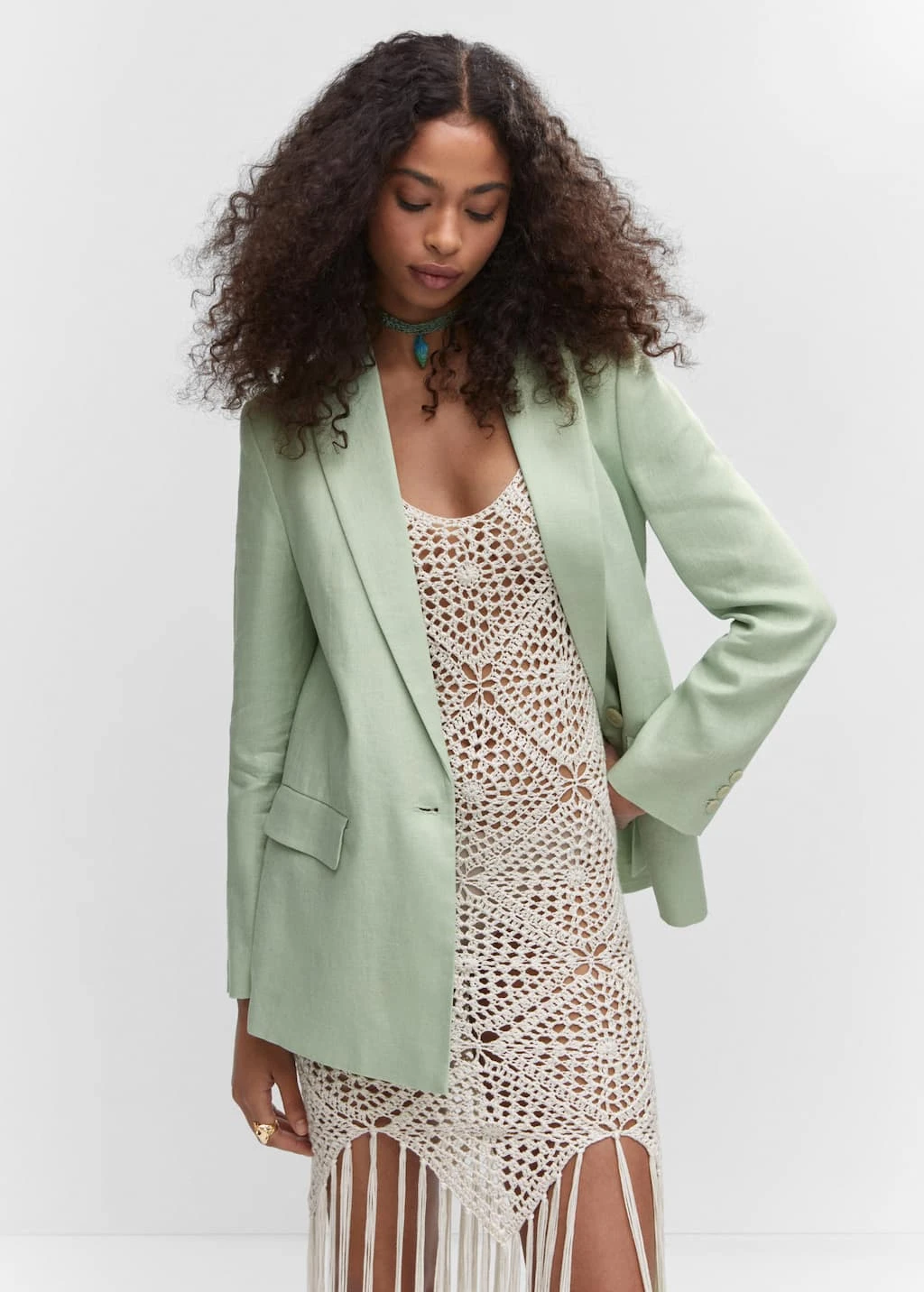 tissu 100 % lin, style oversize, droit, col en v avec rabat, revers crantes, manches longues boutonnees, epaulettes, deux poches a rabat a l’avant, fermeture a bouton sur le devant, doublure, la couleur vert fonce est une exclusivite en ligneCOMPOSITION:100% LIN. DOUBLURE:100% COTON. DOUBLURE MANCHES:100% POLYESTER