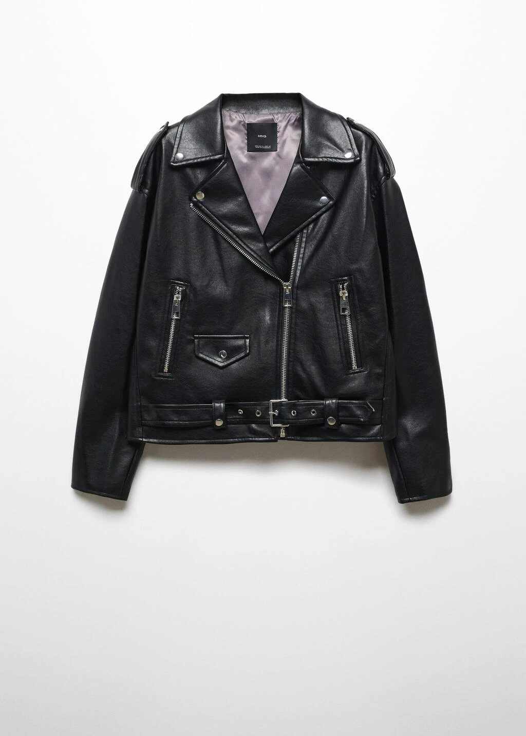 similicuir, style biker, coupe droite, coupe courte, style oversize, col a revers, manches longues, zip, fermeture eclair sur le devant, ceinture decorative, poches zippees sur le devant, boutons decoratifs sur les epaules, doublure, style bohoComposition: 100% polyester. Doublure: 100% polyester. Revêtement: 100% polyurethane. Recouvrement de la ceinture: 100% polyurethane. Base de la ceinture: 100% polyester