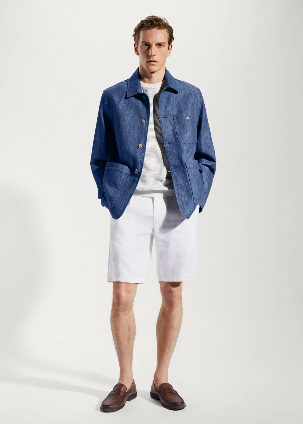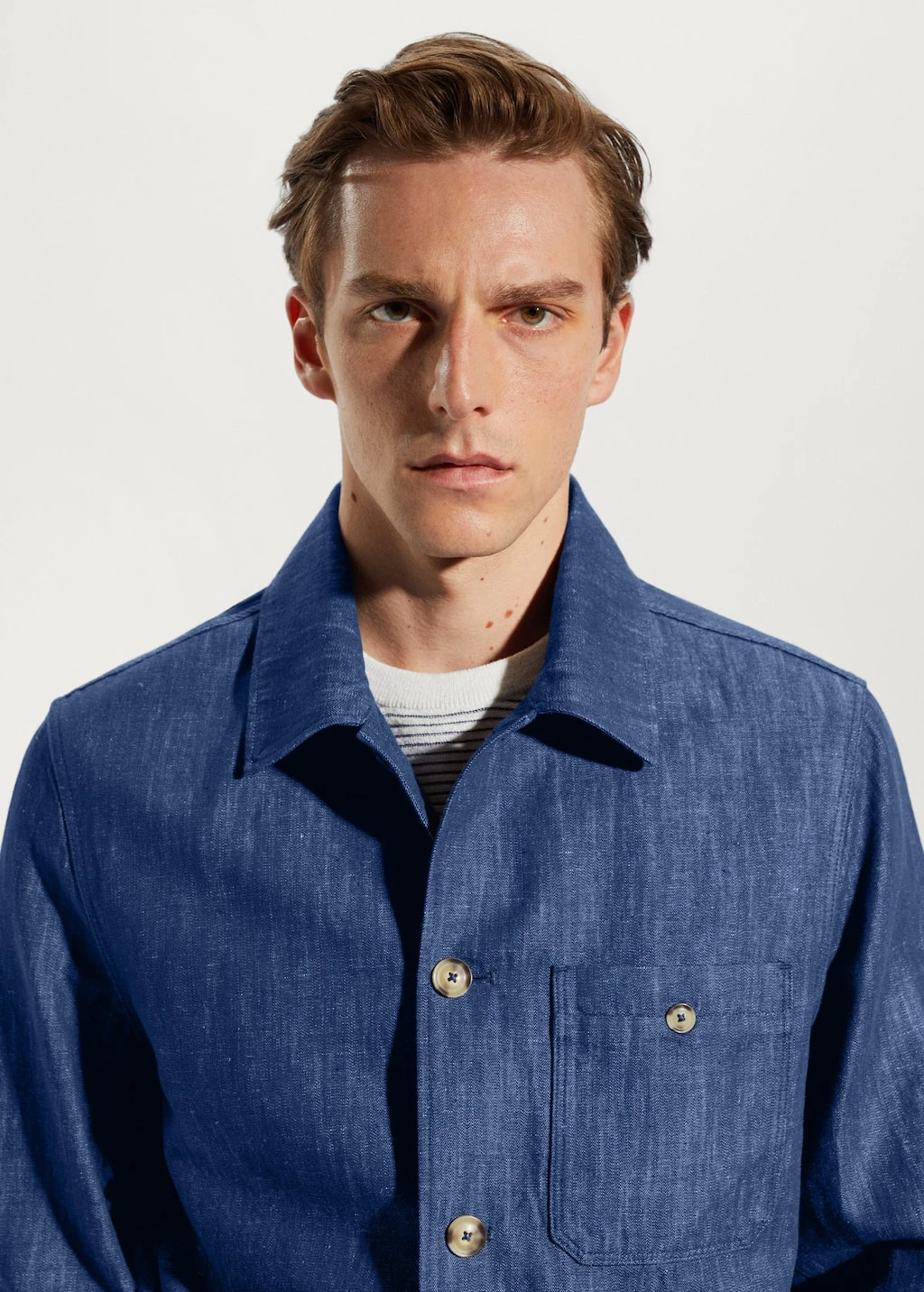 tissu de coton et lin melange, regular-fit, tissu leger, col chemise, fermeture a boutons sur le devant, manches longues avec poignets boutonnes, poche plaquee a bouton sur la poitrine, deux poches plaquees sur les cotes, poche interieure, sans doublure interieure, le mannequin mesure 190 cm et porte une taille m, bas droitComposition: 62% coton,38% lin. Doublure poches: 100% coton